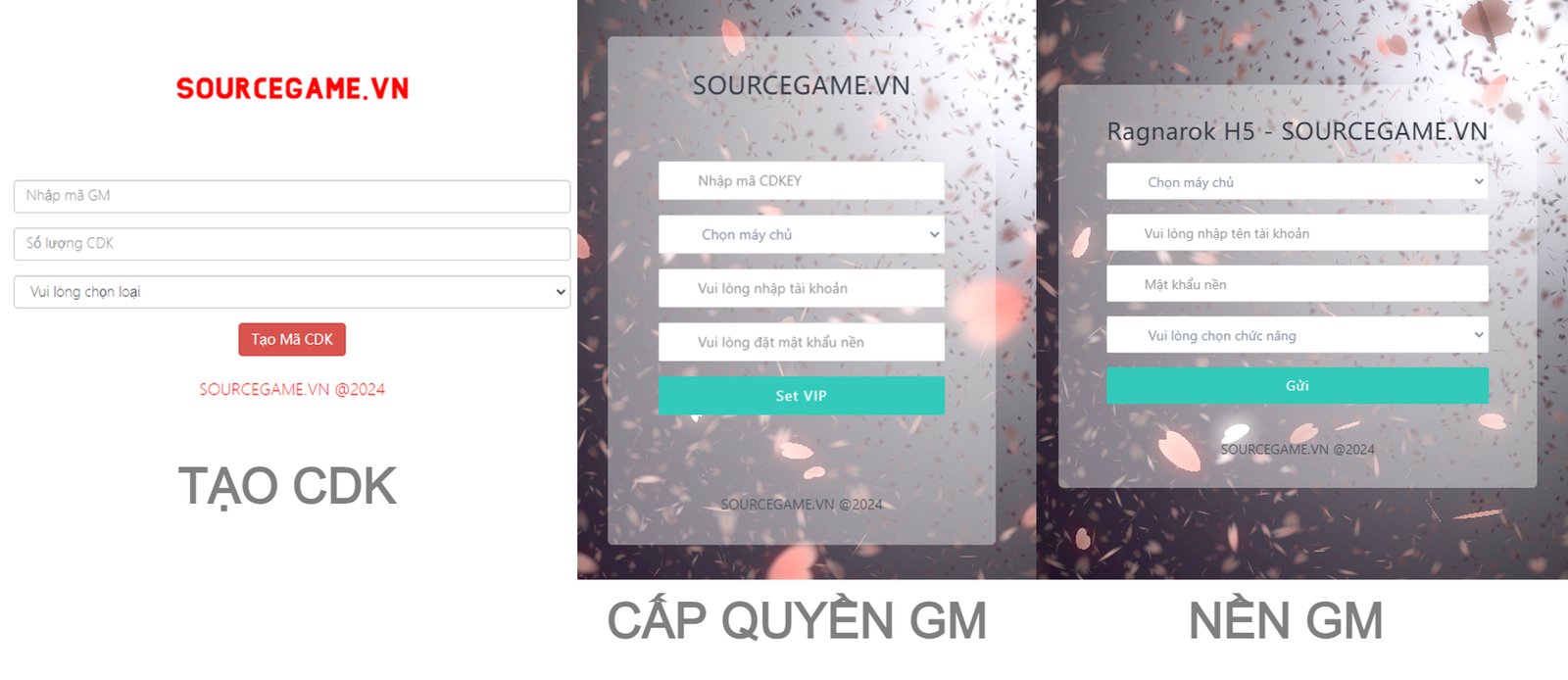 Mô tả: MÃ NGUỒN BAO GỒM SERVER, NỀN GM, SERVER ĐÃ VIỆT HÓA 95% - NỀN GM ĐÃ VIỆT HÓA 100% - VĂN BẢN HƯỚNG DẪN CÀI ĐẶT, MÃ NGUỒN CHẠY TRÊN VPS CENTOS.