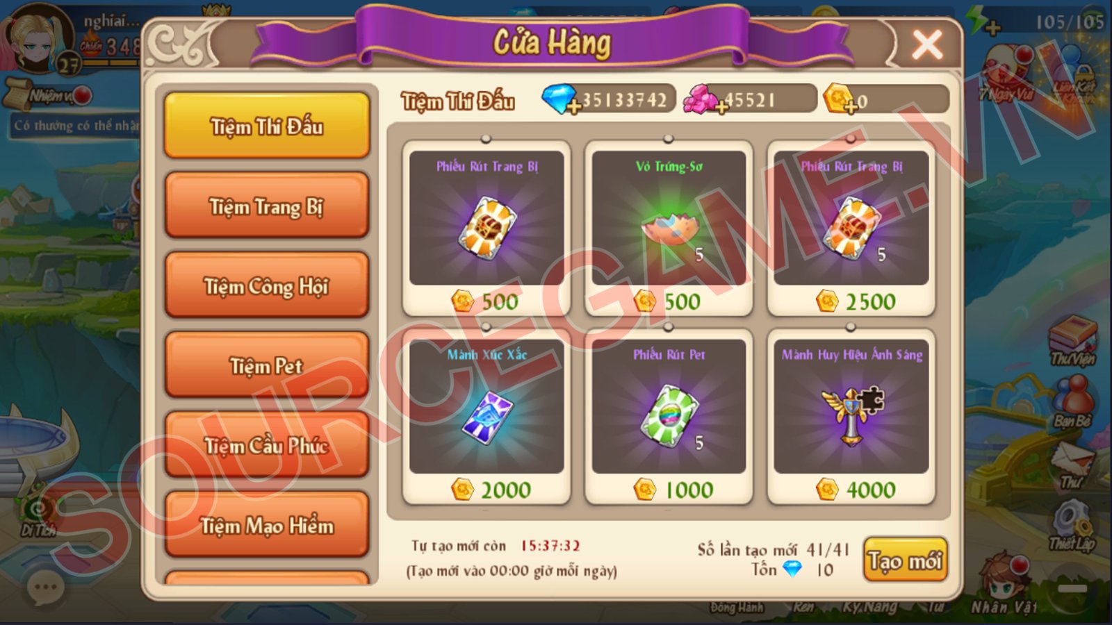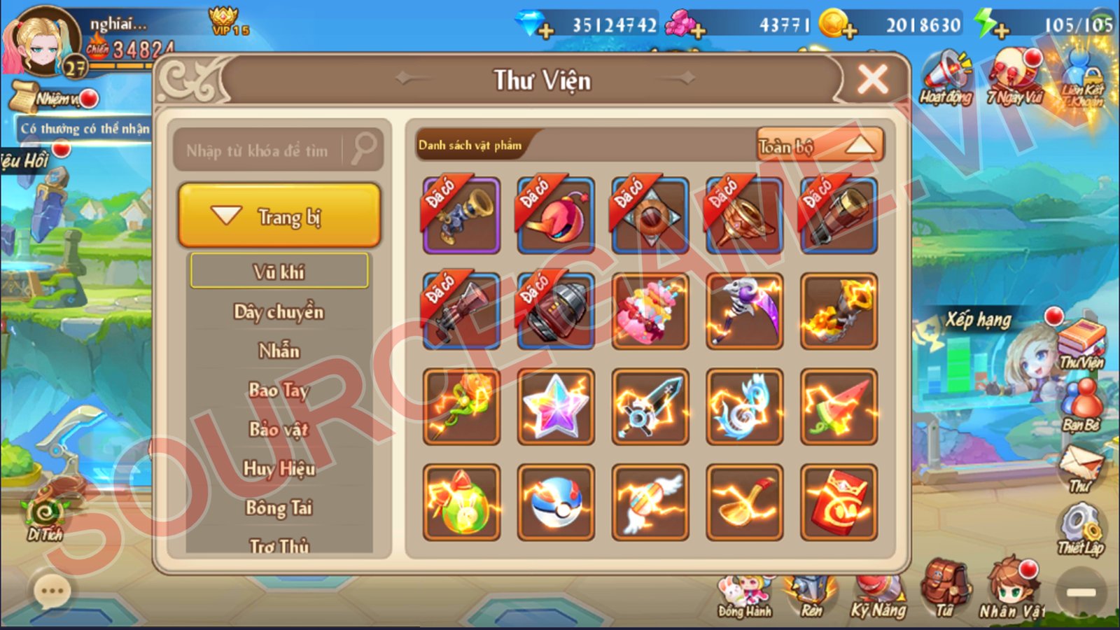 Mô tả: MÃ NGUỒN BAO GỒM SERVER, CLIENT APK IOS, WEB USER NHẬP GIFTOCDE, NỀN GM, VĂN BẢN HƯỚNG DẪN CÀI ĐẶT, VĂN BẢN HƯỚNG DẪN MỞ SERVER MỚI, MÃ NGUỒN CHẠY TRÊN VPS CENTOS