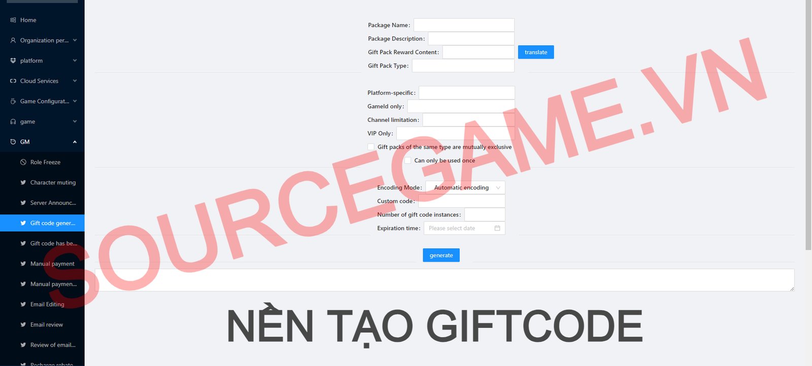 Mô tả: MÃ NGUỒN BAO GỒM SERVER ĐÃ TỐI ƯU RAM, WEB USER, WEB ADMIN, NỀN GM, CÓ CLIENT APK, CÓ LIÊN SERVER, VĂN BẢN HƯỚNG DẪN CÀI ĐẶT, VĂN BẢN HƯỚNG DẪN MỞ SERVER MỚI, MÃ NGUỒN CHẠY TRÊN VPS CENTOS